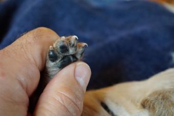 ...unsere J´s sind jetzt 14 Tage alt geworden, die meisten haben jetzt die Augen schon ganz offen und der Gehörgang wird sich jetzt auch langsam öffnen. Bis diese neu erworbenen Sinne komplett geschärft sind vergehen aber noch ein paar Tage. Die Krallen sind mittlerweile so stark gewachsen und spitz, dass sie jetzt gekürzt werden mußten, damit Grace beim Milchtreten nicht am Gesäuge verletzt wird. Bei der Gelegenheit sind jetzt auch die ersten Einzelbildchen unserer J´s entstanden. Da sie momentan ständig noch von Grace´s Zunge gewaschen werden wirkt das Fell evtl. etwas dunkler als es eigentlich ist.