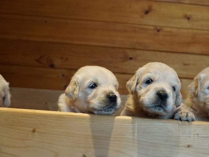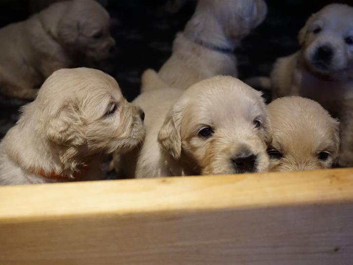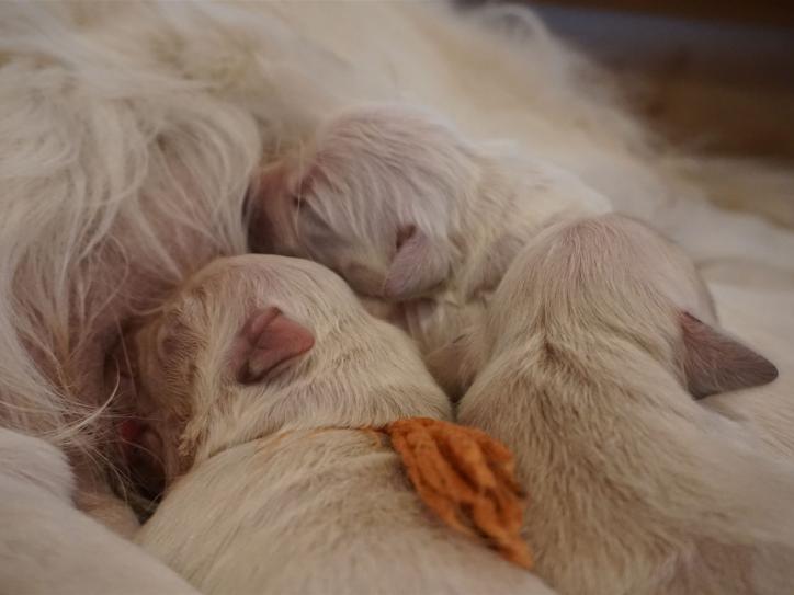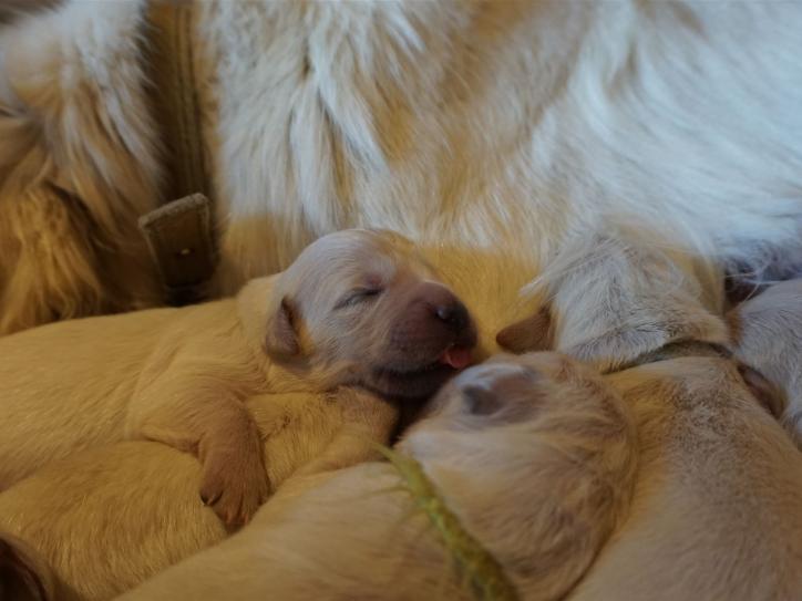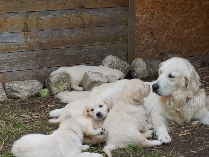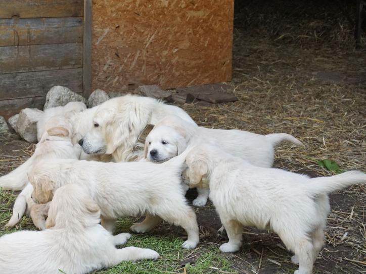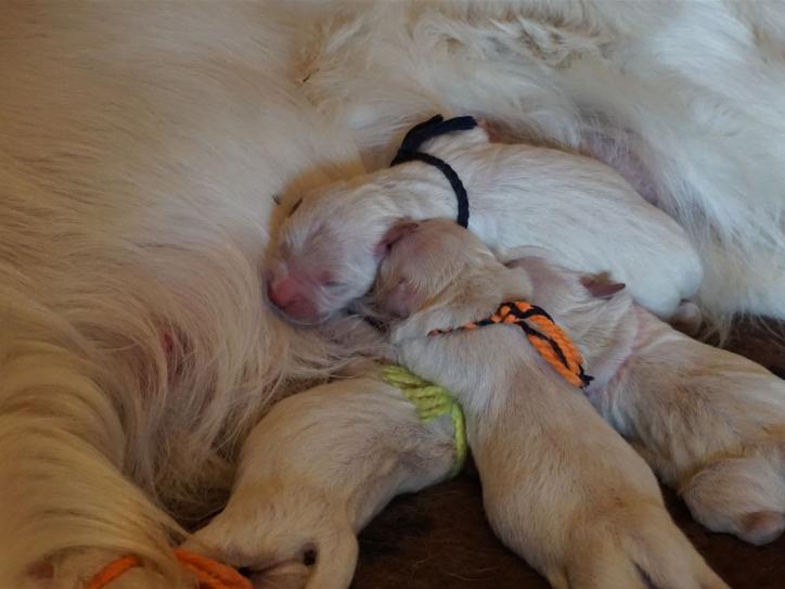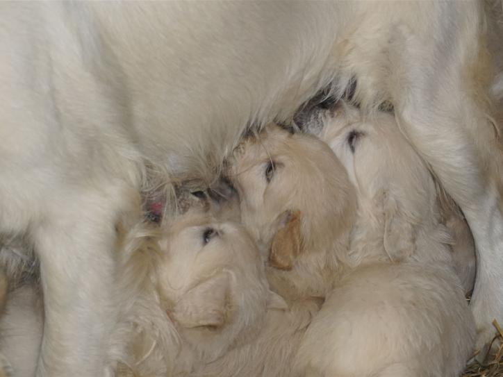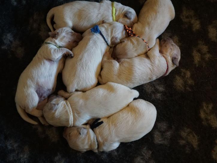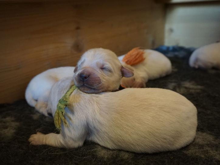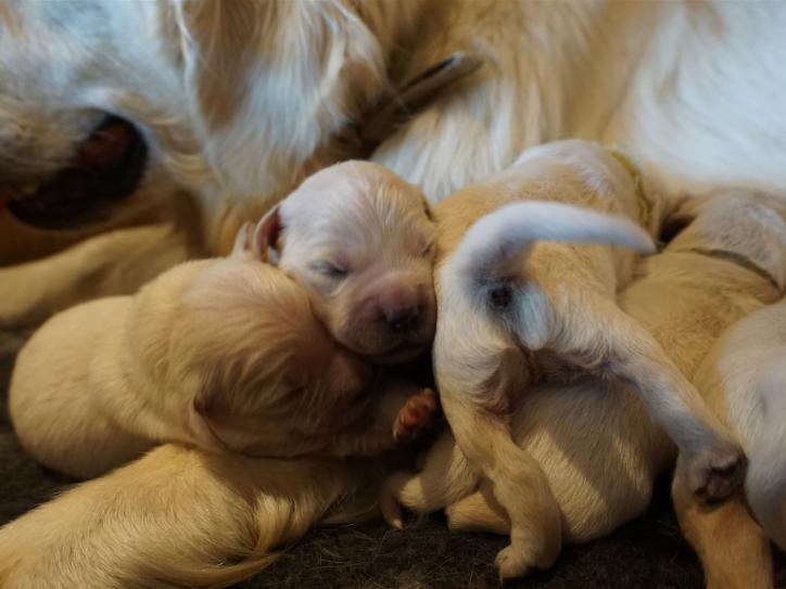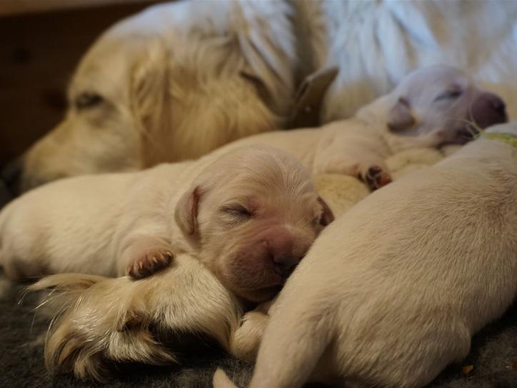 Am 10.07.2017 hat unsere Grace in einer unproblematischen Geburt 10 wunderschöne Welpen zur Welt gebracht. Es sind 7Rüden und 3 Hündinnen in den Farben creme und hellgolden.